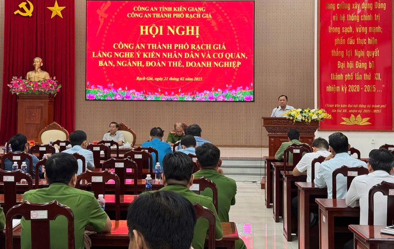 Hội nghị đã ghi nhận được 7 ý kiến đóng góp trực tiếp từ người dân, cơ quan, doanh nghiệp. Các ý kiến đều bày tỏ sự đồng tình, đánh giá cao với những nỗ lực, cố gắng của lực lượng Công an trong thời gian qua, đặc biệt là tinh thần, thái độ phục vụ nhân dân; công tác đảm bảo an ninh chính trị, trật tự an toàn xã hội trên địa bàn. Ngoài ra, có các ý kiến kiến nghị một số nội dung như cần tăng cường thêm lực lượng cảnh sát khu vực ở khu phố, ấp; trang bị công cụ hổ trợ và nâng mức phụ cấp cho lực lượng an ninh trật tự ở cơ sở; hỗ trợ lực lượng giữ gìn an ninh trật tự khu vực Bệnh viện Đa khoa tỉnh và khu vực chợ Rạch Sỏi; cảnh sát khu vực tăng cường đi cơ sở tìm hiểu, nắm bắt tâm tư, nguyện vọng của người dân để phục vụ nhiệm vụ giữ gìn an ninh trật tự tại địa phương; hổ trợ người dân và doanh nghiệp làm định danh điện tử mức độ 2 và các thủ tục đăng ký mua, bán xe máy tại Công an phường, xã.