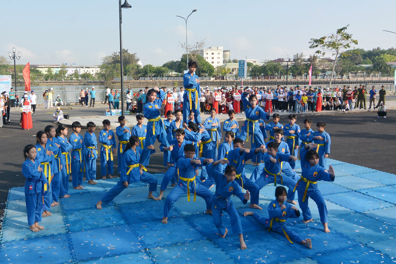 Những hình ảnh về Chương trình đồng diễn sôi động với các tiết mục của Câu lạc bộ Võ thuật Vovinam, Dance Sport trường Kim Đồng, Múa Quạt Câu lạc bộ Dưỡng sinh và Nhảy Aerobic trường Hoa Hồng. Các đại biểu cũng tham gia Ngày chạy Olympic với cự ly 1km và thi đấu kéo co, tạo không khi háo hứng, gắn kết cộng đồng.