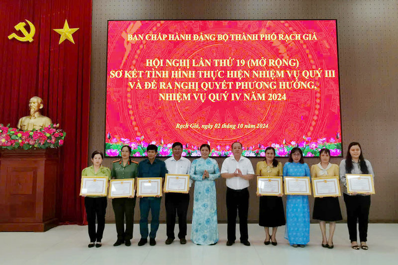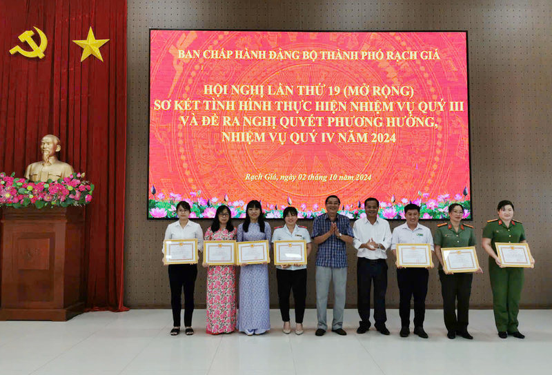 Ban Chấp hành Đảng bộ thành phố đánh giá: Thực hiện nhiệm vụ quý III năm 2024 đã tổ chức thực hiện khá tốt các nhiệm vụ chính trị của Đảng bộ. Quan tâm chỉ đạo công tác chuẩn bị đại hội Đảng bộ các cấp, nhất là các chi bộ, đảng bộ được tỉnh, thành phố chọn làm điểm chỉ đạo; năng lực lãnh đạo, sức chiến đấu của tổ chức cơ sở đảng và đảng viên được nâng lên, công tác cán bộ được tập trung thực hiện tốt. Năng lực lãnh đạo, điều hành của chính quyền có nhiều chuyển biến tích cực; Dân vận, Mặt trận Tổ quốc và các đoàn thể thực hiện tốt chức năng, nhiệm vụ, các phong trào thi đua yêu nước và các hoạt động an sinh xã hội. Nổi bật là việc vận động ủng hộ đồng bào các tỉnh, thành phố phía Bắc bị thiệt hại do bão số 3 gây ra. Kinh tế thành phố tiếp tục ổn định và phát triển, nhiều chỉ tiêu đạt cao so cùng kỳ, công tác quản lý, vận hành đô thị được tăng cường, tập trung giải quyết tháo gỡ những khó khăn, vướng mắc các công trình, dự án trên địa bàn; công tác trật tự đô thị, vệ sinh môi trường có nhiều chuyển biến tích cực. Nhất là việc tổ chức thực hiện khá tốt Nghị quyết số 32 của Thành ủy và Kế hoạch số 177 của UBND thành phố Rạch Giá về tăng cường hiệu lực, hiệu quả quản lý trật tự đô thị, vệ sinh môi trường đã từng bước tạo chuyển biến tích cực, được cán bộ, đảng viên và nhân dân đồng tình ủng hộ thực hiện, góp phần thực hiện tốt Quy chế quản lý kiến trúc quy hoạch đô thị và sơ đồ phân bố các khu vực phát triển đô thị thành phố.