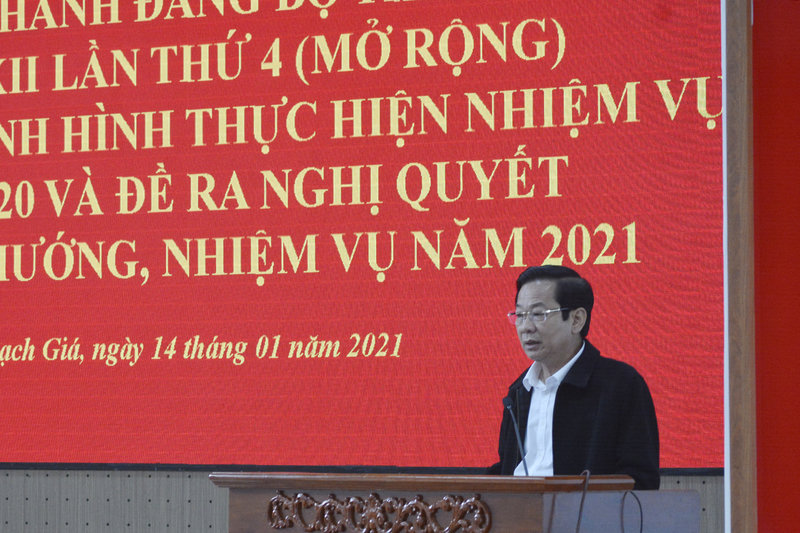 Phát biểu chỉ đạo tại Hội nghị Ban Chấp hành Đảng bộ thành phố Rạch Giá lần thứ 4, đồng chí Đỗ Thanh Bình - Bí thư Tỉnh ủy Kiên Giang đã biểu dương những thành tích của Đảng bộ thành phố Rạch Giá đã đạt được trong năm 2020; đồng thời nhấn mạnh những nhiệm vụ trọng tâm cần tổ chức lãnh đạo thực hiện đạt kết quả tốt hơn trong năm mới 2021. Nhất là công tác lãnh đạo các cấp ủy, tổ chức Đảng cần tập trung cao độ, huy động sức mạnh tổng hợp của toàn Đảng bộ, quân và dân thành phố, lãnh đạo, chỉ đạo thực hiện thắng lợi Nghị quyết năm 2021. Phương hướng, mục tiêu chủ yếu là tập trung cụ thể hóa hoàn thành các chương trình, kế hoạch, đề án trọng tâm, trọng điểm thực hiện Nghị quyết Đại hội XII Đảng bộ thành phố gắn với triển khai, quán triệt, thực hiện nghiêm túc Nghị quyết Đại hội XI Đảng bộ tỉnh, Nghị quyết Đại hội XIII của Đảng, tạo chuyển biến tích cực ngay từ năm đầu thực hiện Nghị quyết Đại hội Đảng các cấp. Tiếp tục tăng cường công tác xây dựng Đảng, xây dựng hệ thống chính trị trong sạch vững mạnh; nâng cao năng lực lãnh đạo, sức chiến đấu của các tổ chức cơ sở đảng, chất lượng sinh hoạt chi bộ và chất lượng đội ngũ cán bộ, đảng viên, công chức, viên chức; lãnh đạo thực hiện tốt hơn nữa cải cách hành chính, nâng cao năng lực cạnh tranh; hiệu lực, hiệu quả quản lý chính quyền các cấp; phát huy sức mạnh khối đại đoàn kết toàn dân tộc. Tiếp tục lãnh đạo phát triển kinh tế theo hướng ổn định, bền vững, thúc đẩy sản xuất kinh doanh. Tăng cường quản lý đất đai, bảo vệ tài nguyên môi trường, có biện pháp ứng phó hiệu quả biến đổi khí hậu, phòng, chống dịch bệnh trên địa bàn; tập trung công tác quản lý đô thị, xây dựng phường văn minh đô thị và từng bước thực hiện đạt các tiêu chí xã nông thôn mới theo hướng nâng cao. Chú trọng phát triển văn hóa, xã hội; bảo đảm an sinh xã hội, nâng cao đời sống vật chất và tinh thần của nhân dân; củng cố quốc phòng-an ninh, giữ vững ổn định chính trị và trật tự an toàn xã hội./.