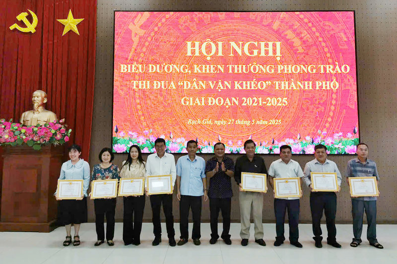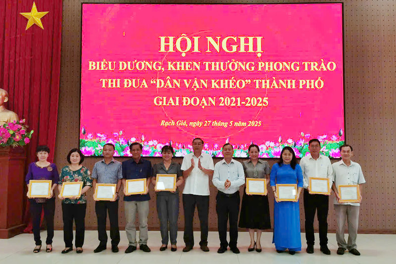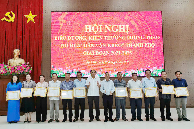 Tại hội nghị này, Ban Chỉ đạo phong trào thi đua “Dân vận khéo” thành phố Rạch Giá đã trao giấy chứng nhận cho các mô hình tập thể và cá nhân đạt được trong phong trào thi đua “Dân vận khéo” thành phố Rạch Giá, giai đoạn 2021-2025.
