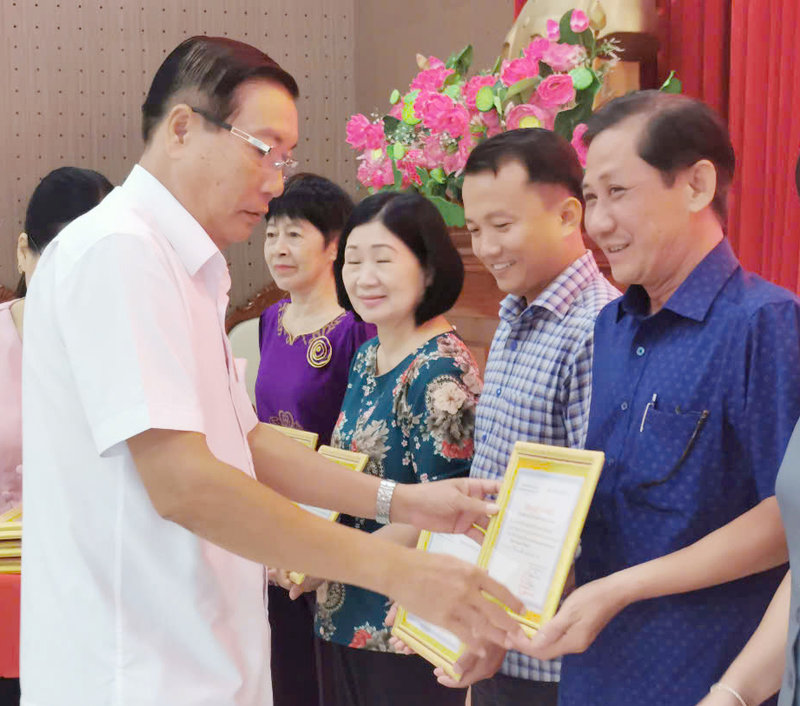 Ảnh: Đồng chí Nguyễn Văn Nhỏ, Phó Bí thư Thường trực Thành ủy – Chủ tịch Hội đồng nhân dân, Trưởng Ban Chỉ đạo phong trào thi đua “Dân vận khéo” thành phố Rạch Giá cùng các đồng chí Ủy viên Ban Thường vụ Thành ủy, Lãnh đạo Ủy ban nhân dân thành phố đến dự và trao tặng giấy khen cho tập thể và cá nhân.