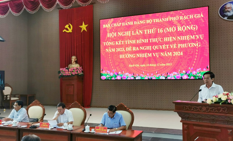 Hội nghị đã thống nhất thông qua Nghị quyết về phương hướng, nhiệm vụ năm 2024 của Thành ủy Rạch Giá. Phát biểu chỉ đạo tại hội nghị, đồng chí Đỗ Thanh Bình - Ủy viên Ban Chấp hành Trung ương Đảng, Bí thư Tỉnh ủy, Trưởng đoàn đại biểu Quốc hội đơn vị tỉnh Kiên Giang yêu cầu Ban Chấp hành Đảng bộ thành phố Rạch Giá nêu quyết tâm cao trong lãnh đạo thực hiện thắng lợi nghị quyết về nhiệm vụ phát triển kinh tế - xã hội, quốc phòng an ninh năm 2024; chỉ đạo nâng cao chất lượng công tác cải cách thủ tục hành chính, nâng cao chất lượng các tiêu chí đô thị loại II song song với việc hoàn thành đạt và vượt chỉ tiêu đối với các tiêu chí đô thị loại I để sớm được công nhận ngay trong năm 2024./.