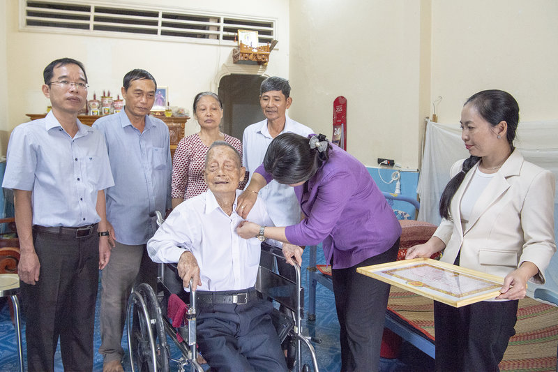 Ảnh: , Phó Bí thư Thành ủy Rạch Giá Nguyễn Thị Hoàn Xuân trao Huy hiệu 65 năm tuổi Đảng cho đảng viên Vũ Năng Uông, sinh hoạt tại Đảng bộ phường Vĩnh Lạc, cư ngụ 347A Lâm Quang Ky, phường Vĩnh Lạc