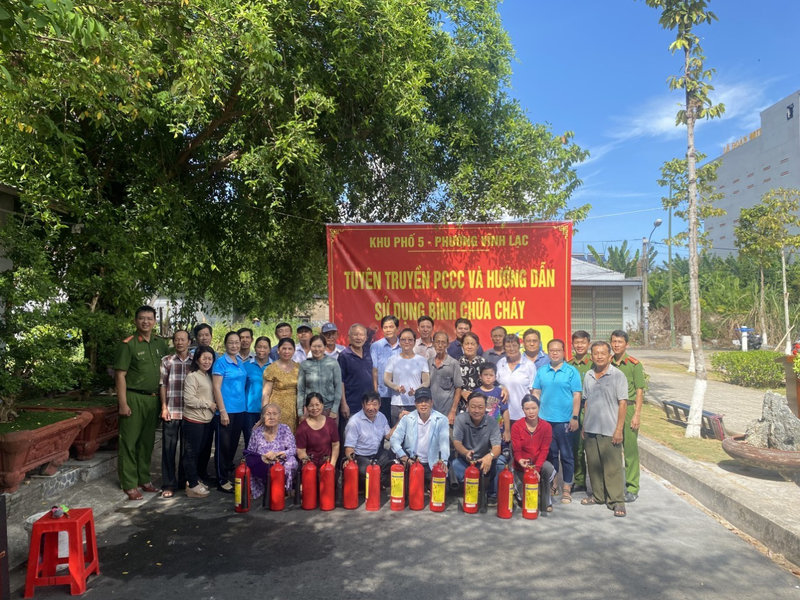 Tại khu phố 5, phường Vĩnh Lạc đã tổ chức tuyên truyền công tác phòng cháy, chữa cháy và hướng dẫn sử dụng bình chữa cháy. Đến tham dự cấp phường có đồng chí Võ Thị Minh Hòa, Phó Bí thư Thường trực Đảng ủy, Chủ tịch HĐND phường, đồng chí Trần Văn Phận, Phó Trưởng Công an phường Vĩnh Lạc và các đ/c HĐND, UBND, UBMTTQ, các đoàn thể phường, công an phường; Cấp khu phố có đ/c Đinh Văn Quang, ĐUV, Bí thư-Trưởng khu phố 5 cùng các đ/c Chi ủy viên, BLĐ khu phố, đoàn thể khu phố và đại diện 40 tổ NDTQ tham dự. Đại diện Công an phường Vĩnh Lạc đã tuyên truyền cho người dân những kiến thức cơ bản về công tác phòng cháy chữa cháy; cách thức bảo quản, hướng dẫn sử dụng các loại bình chữa cháy xách tay.