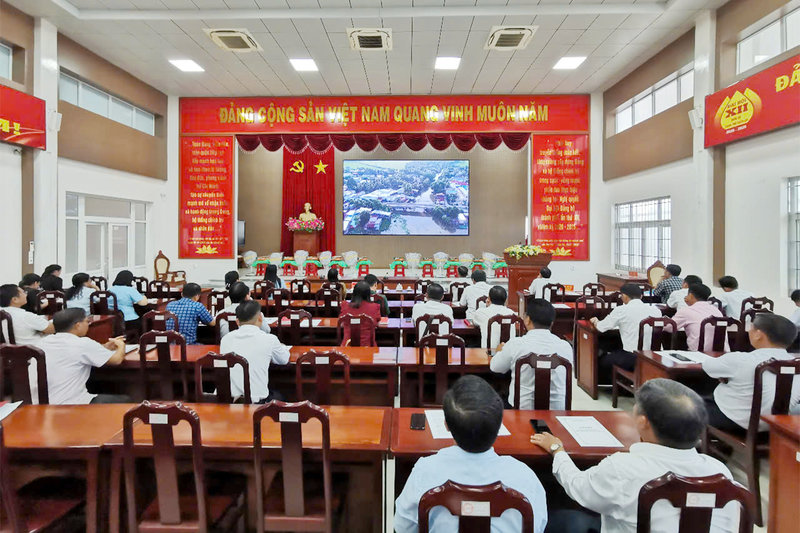 Ảnh: Tại buổi lễ, quý đại biểu và người dân được hỗ trợ cất nhà “Đại Đoàn Kết” xem phóng sư truyền hình “Thành phố Rạch Giá chung tay xóa nhà tạm, nhà dột nát” do Ban Chỉ đạo “xóa nhà tạm, nhà dột nát” thành phố chi đạo Trung tâm Văn hóa thể thao và Truyền thanh thành phố Rạch Giá thực hiện tháng 5 năm 2025.