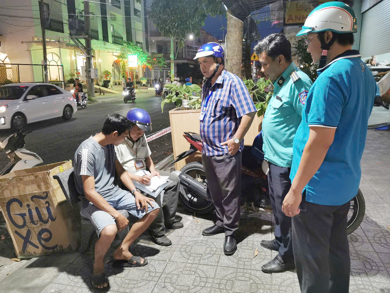 Ảnh: Tổ Kiểm tra giá dịch vụ trông giữ xe thành phố kiểm tra tại điểm trong giữ xe của anh Danh Đường tại địa chỉ G11-44 đường Tôn Đức Thắng, thuộc phường An Hòa