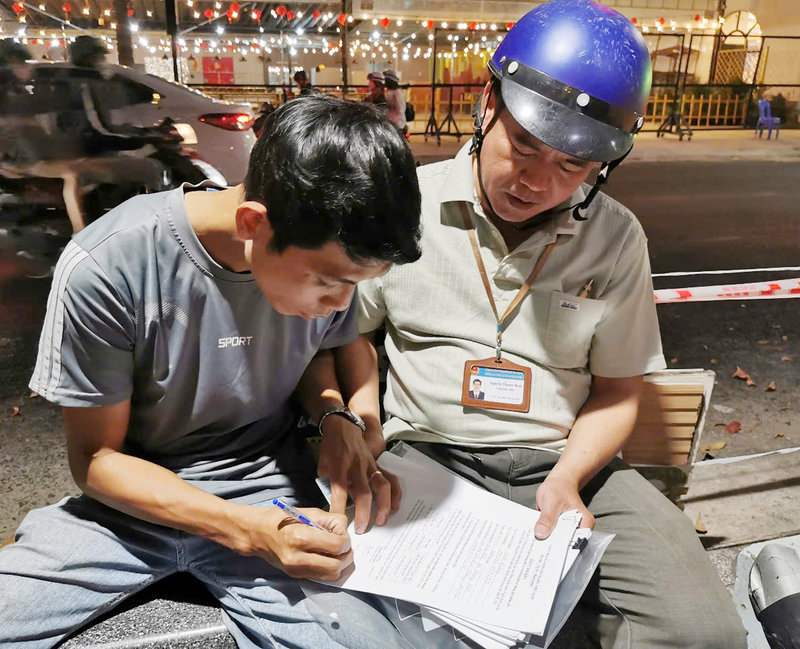 Ảnh: Sau khi nghe Tổ Kiểm tra giải thích rõ những quy định về giá địch vụ giữ xe theo quy định tại Quyết định số 19 ngày 2/10/2023 của Ủy ban nhân dân tỉnh Kiên Giang, anh Danh Đường đã ký cam kết niêm yết giá trông giữ xe và thực hiện thu đúng giá niêm yết
