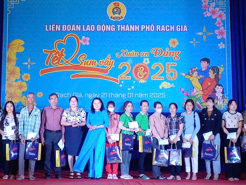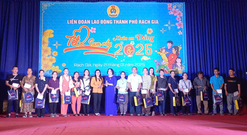Nhân dịp năm mới Ất Tỵ 2025, tại Nhà văn hóa Lao động tỉnh Kiên Giang Ban thường vụ Liên đoàn lao động thành phố Rạch Giá tổ chức buổi họp mặt thăm hỏi, trao tặng quà cho đoàn viên công đoàn thuộc Liên đoàn lao động thành phố Rạch Giá.