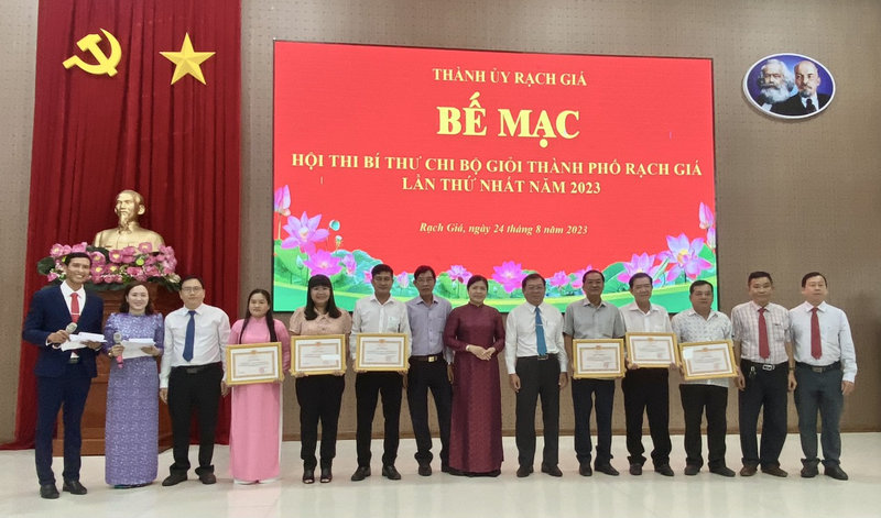 Sau 02 phần thi sôi nổi, hấp dẫn, Ban Giám khảo, Tổ Thư ký đã làm việc công tâm, khách quan, đánh giá đúng khả năng của các thí sinh. Ban Tổ chức đã trao giải tập thể cho 06 đảng bộ (gồm 01 giải nhất, 01 giải nhì, 01 giải ba và 03 giải khuyến khích) và 13 giải cá nhân (gồm 01 giải nhất, 02 giải nhì, 03 giải ba và 07 giải khuyến khích). Trao Chứng chỉ cho 5 Bí thư chi bộ trực thuộc Đảng ủy các phường, xã trên địa bàn thành phố Rạch Giá đạt danh hiệu "Bí thư chi bộ giỏi"./.