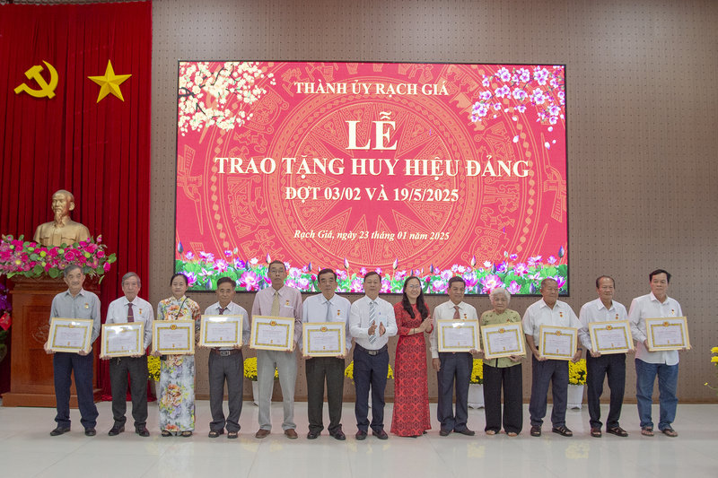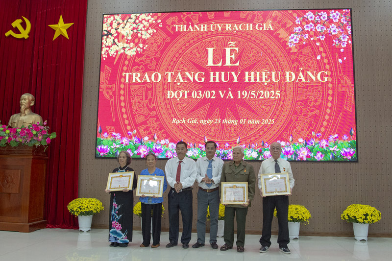 Ban Thường vụ Thành ủy ghi nhận và đáng giá cao sự đóng góp quý giá của các thế hệ đảng viên cao niên tuổi Đảng hiện đang công tác, nghỉ hưu, sinh hoạt Đảng tại các chi bộ, đảng bộ trực thuộc Đảng bộ thành phố Rạch Giá vào việc tổ chức triển khai và thực hiện hiện thắng lợi Nghị quyết của Đảng bộ thành phố qua các kỳ đại hội. Những đồng chí đảng viên vinh dự được nhận Huy hiệu Đảng luôn giữ vững lập trường tư tưởng, quan điểm cách mạng của Đảng, ra sức rèn luyện, giữ gìn phẩm chất chính trị, đạo đức, lối sống, đóng góp công sức, trí tuệ và kinh nghiệm vào sự phát triển của Đảng bộ thành phố Rạch Giá trên các lĩnh vực của đời sống xã hội. Nổi bật là việc xây dựng thành phố Rạch Giá đạt đô thị loại I trực thuộc tỉnh Kiên Giang theo Quyết định số 195 ngày 21/1/2025 của Thủ tướng Chính phủ.