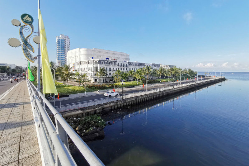 Ảnh: Treo Quốc kỳ trên tuyến đường Nguyễn Thái Học nối dài xung quanh khu vực Vincom Plaza Rạch Giá./.