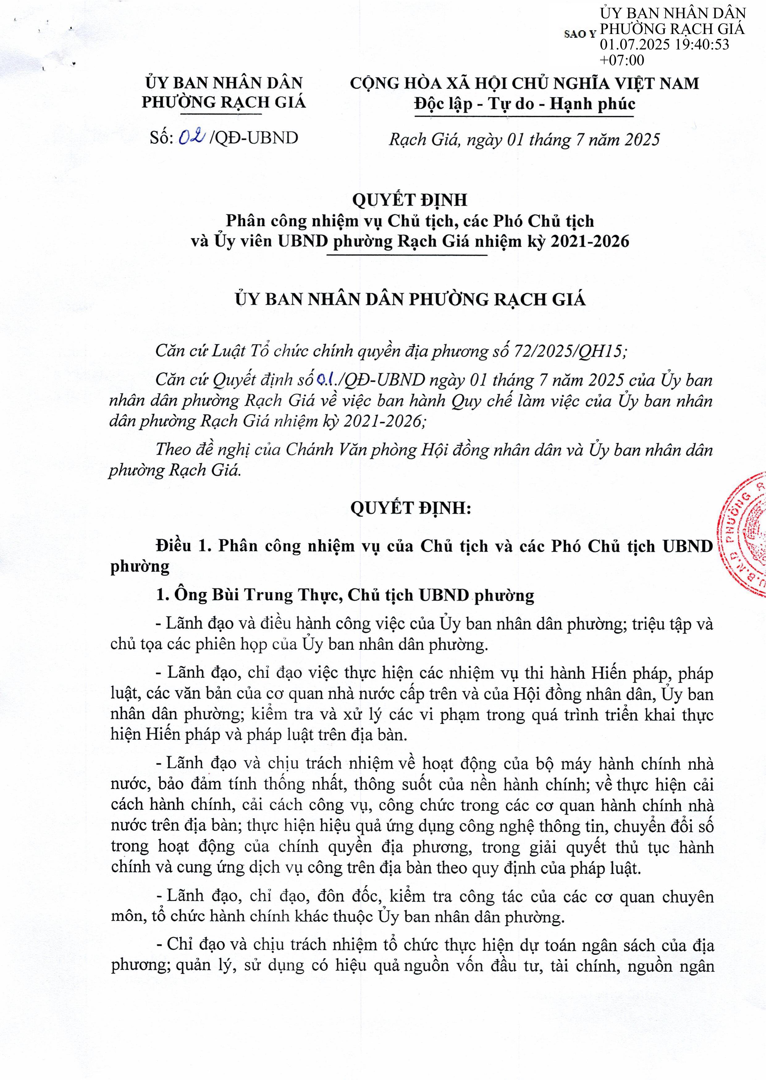 aA Giới thiệu Tổ chức bộ máy 26/08/2025, 09:05 Tập tin 02-qd-ubndsigned.pdf (6.42 MB) Quay về Chia sẻ Z Copy link thành công Tin khác Nhạc hiệu và Tít của Trung tâm Văn hóa, Thể thao và Truyền thanh phường Rạch Giá Giới thiệu 10/09/2025 GIÁ Giới thiệu 10/09/2025 Thông tin người có thẩm quyền Giới thiệu 26/08/2025 Thông tin đơn vị Giới thiệu 26/08/2025 Danh bạ Giới thiệu 26/08/2025 Công bố người phát ngôn Giới thiệu 26/08/2025 Danh sách cán bộ, công chức Giới thiệu 26/08/2025 Ủy ban nhân dân Giới thiệu 26/08/2025 Hội đồng nhân dân Giới thiệu 26/08/2025 Giới thiệu chung Giới thiệu 26/08/2025 /to-chuc-bo-may