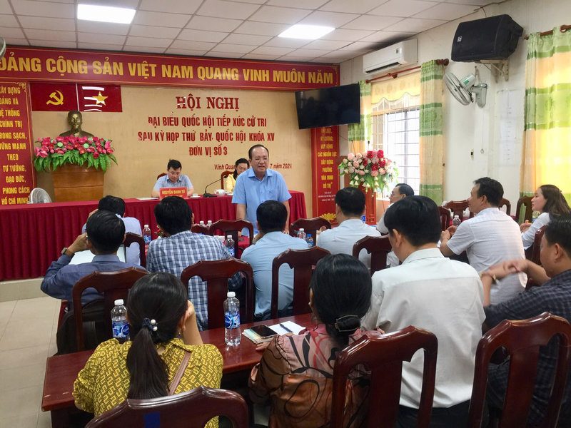 Tại buổi tiếp xúc, cử tri Phạm Hữu Thanh, Khu phố Lý Thái Tổ, phường Vĩnh Quang có ý kiến về những quy định cấp, đổi biến số xe gắn máy gây khó khăn cho người dân; thành phố làm chợ tạm Nông hải sản để những người mua bán nhỏ tập trung mua bán tại đây; sửa chữa và xử lý hệ thống thoát nước tuyến đường Điện Biên Phủ; mức chi hổ trợ cho lực lượng tham gia Bảo vệ ANTT ở cơ sở quá thấp; việc chi trả lương, phụ cấp cho cán bộ ở khu phố và ấp chưa thỏa đáng. Cử tri phường Vĩnh Quang tiếp tục có ý kiến đề nghị Nhà nước tăng cường công tác quản lý giá, vì khi lương tăng thì giá cả hàng hóa cũng tăng theo; việc bảo hiểm y tế tăng giá gây khó khăn cho người dân, nhất là những người có thu nhập thấp.