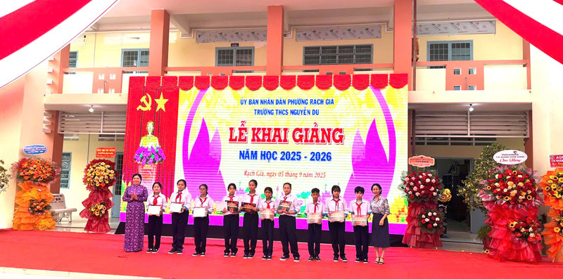 Năm học mới, Trường THCS Nguyễn Du vui mừng chào đón 399 học sinh lớp 6, nâng tổng quy mô lên 42 lớp với 1.945 em. Trong đó, khối 6 có 09 lớp, khối 7 có 10 lớp, khối 8 có 13 lớp và khối 9 có 10 lớp. Trong năm học 2024-2025, nhà trường đạt nhiều kết quả đáng khích lệ: tỷ lệ học sinh lên lớp thẳng đạt 99,41%; 100% học sinh lớp 9 hoàn thành chương trình THCS; có 29 học sinh đạt giải học sinh giỏi cấp thành phố, 7 giải cấp tỉnh, 01 giải Nhì cuộc thi Khoa học kỹ thuật cấp tỉnh; cùng nhiều thành tích từ các cuộc thi trực tuyến. Trường còn tổ chức 10 lớp dạy bơi cho gần 300 em, góp phần trang bị kỹ năng sống thiết thực. Với kết quả trên, Trường THCS Nguyễn Du được UBND thành phố Rạch Giá công nhận tập thể xuất sắc, đứng hạng Nhất khối THCS.