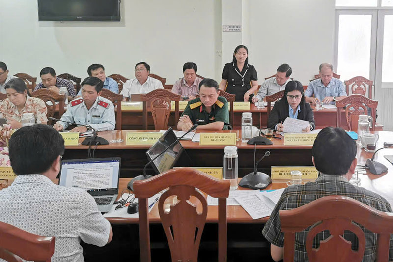 Ảnh: Lãnh đạo phòng Tài nguyên và Môi trường thành phố Rạch Giá phát biểu về giải pháp đẩy nhanh tiến độ giải quyết thủ tục hành chính trên lĩnh vực nhà ở và đất đai trên địa bàn thành phố